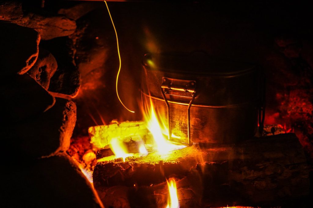 ・焚き火で加熱